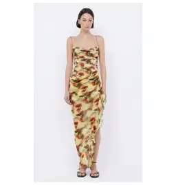 Stunning floral dress by Aussie label Bec and Bridge. Featuring an asymmetric ruffle hem and adjustable open back with a stand out print reminiscent of Australian summers.