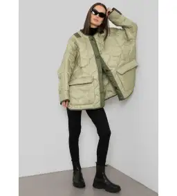 Frankie Shop Teddy Quilted Jacket Moss Green Size UK 12