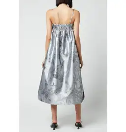 Ganni Jacquard Strap Dress Silver Size UK 10