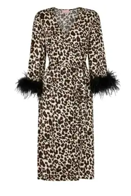 Kitri Aurelie Leopard Feather Wrap Midi Dress Print Size UK 10
