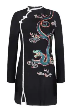 RIXO Oriental Orchid Dragon Mini Dress Black Size 10